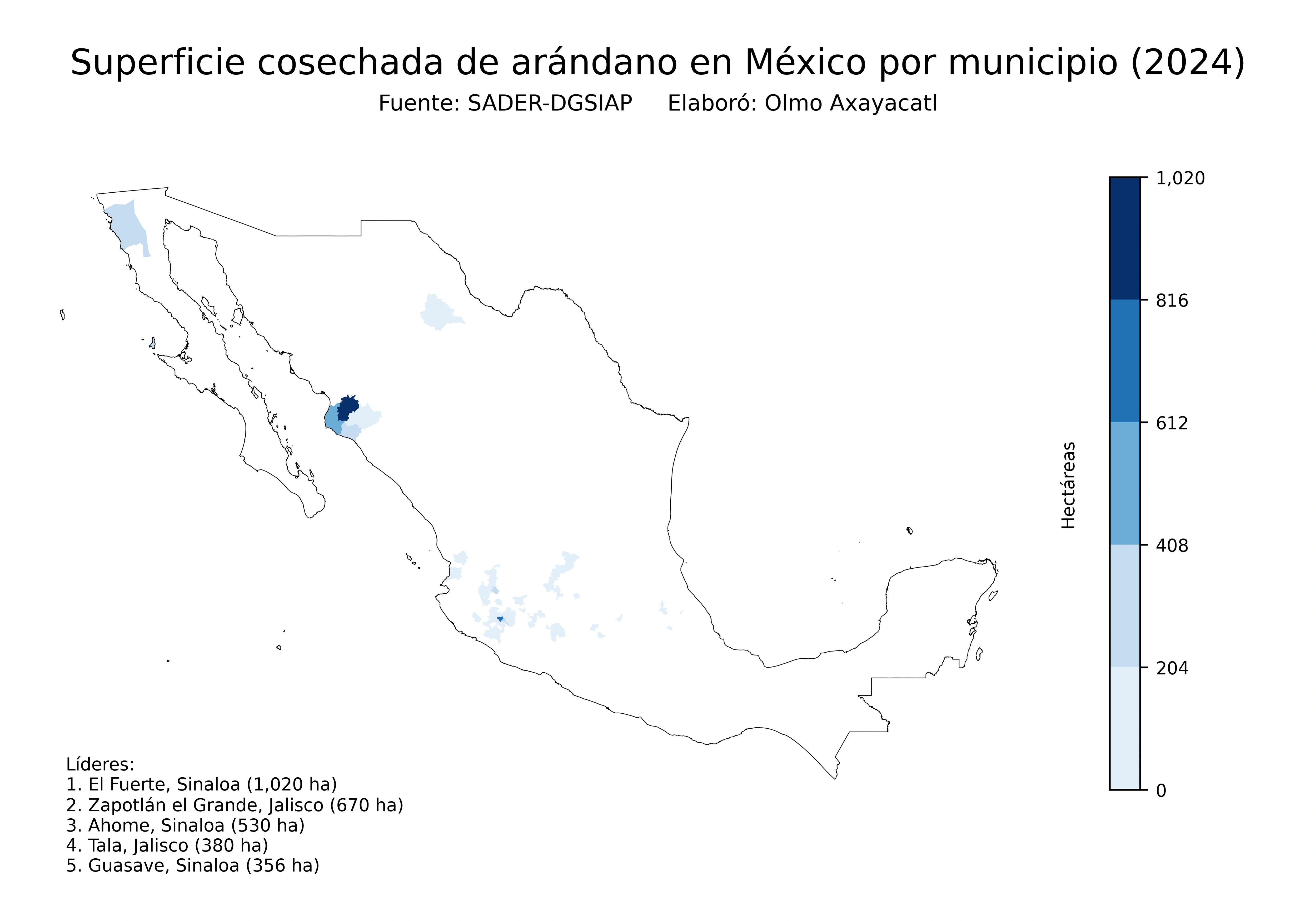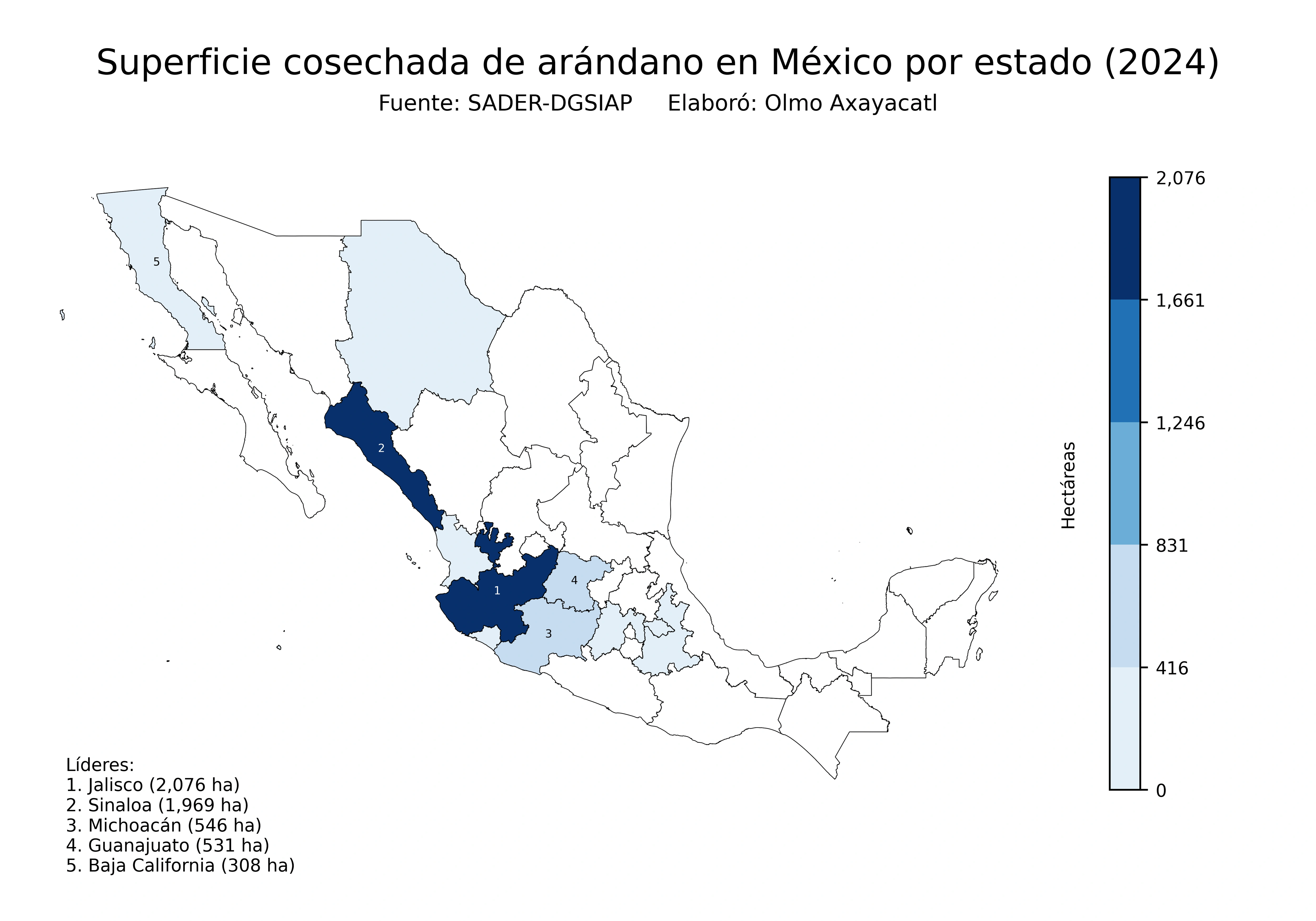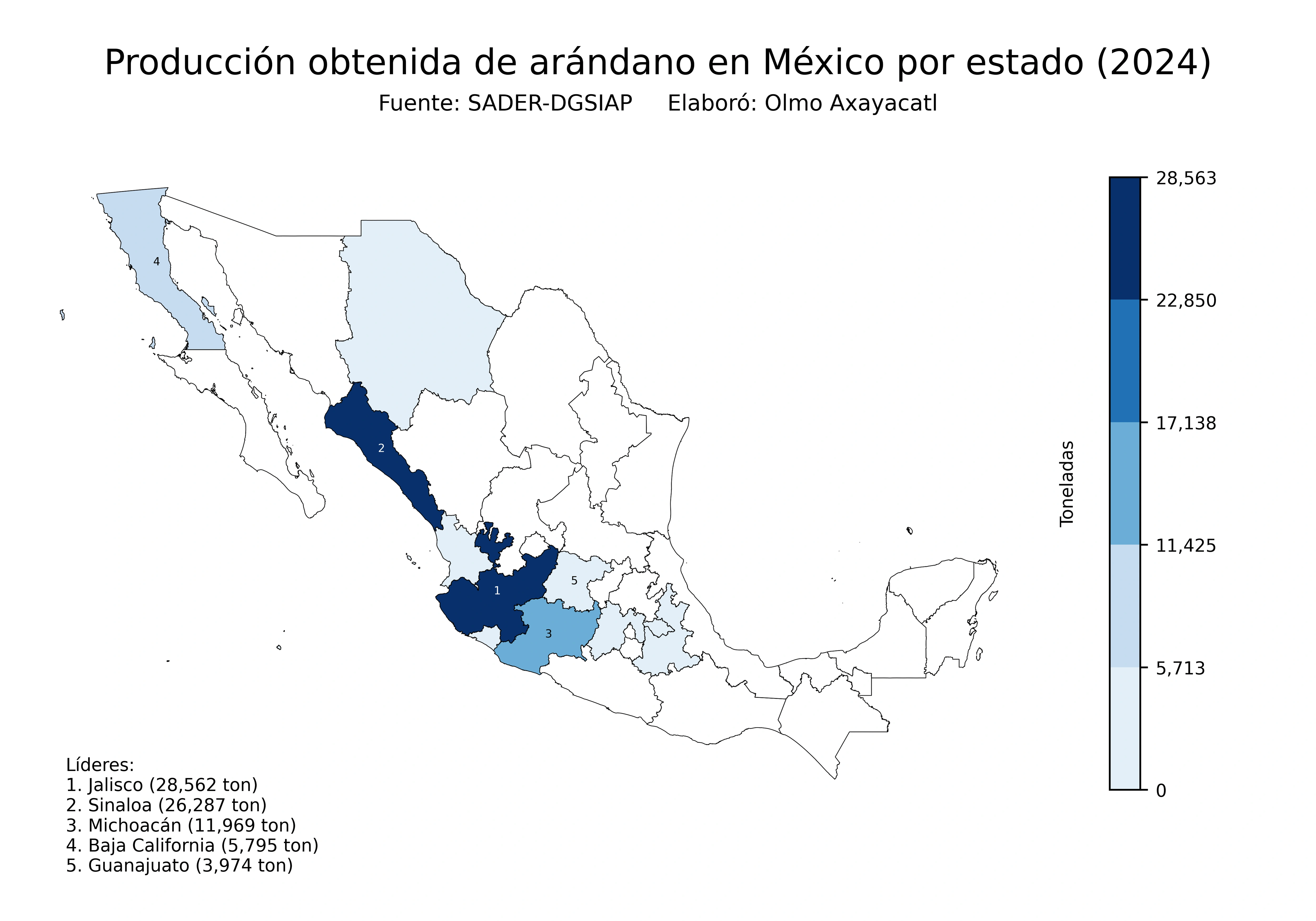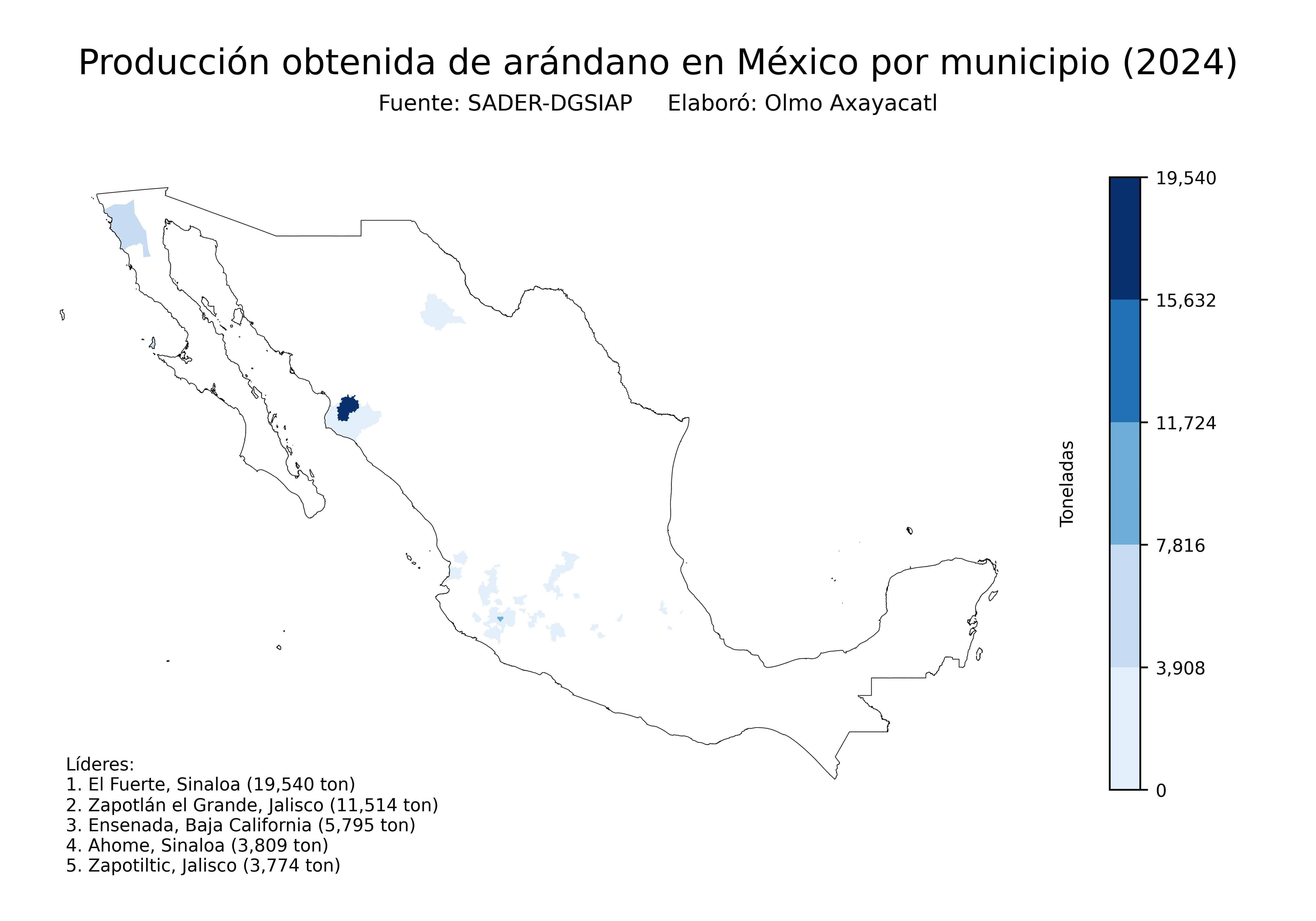 Mapas de la producción de arándano en México