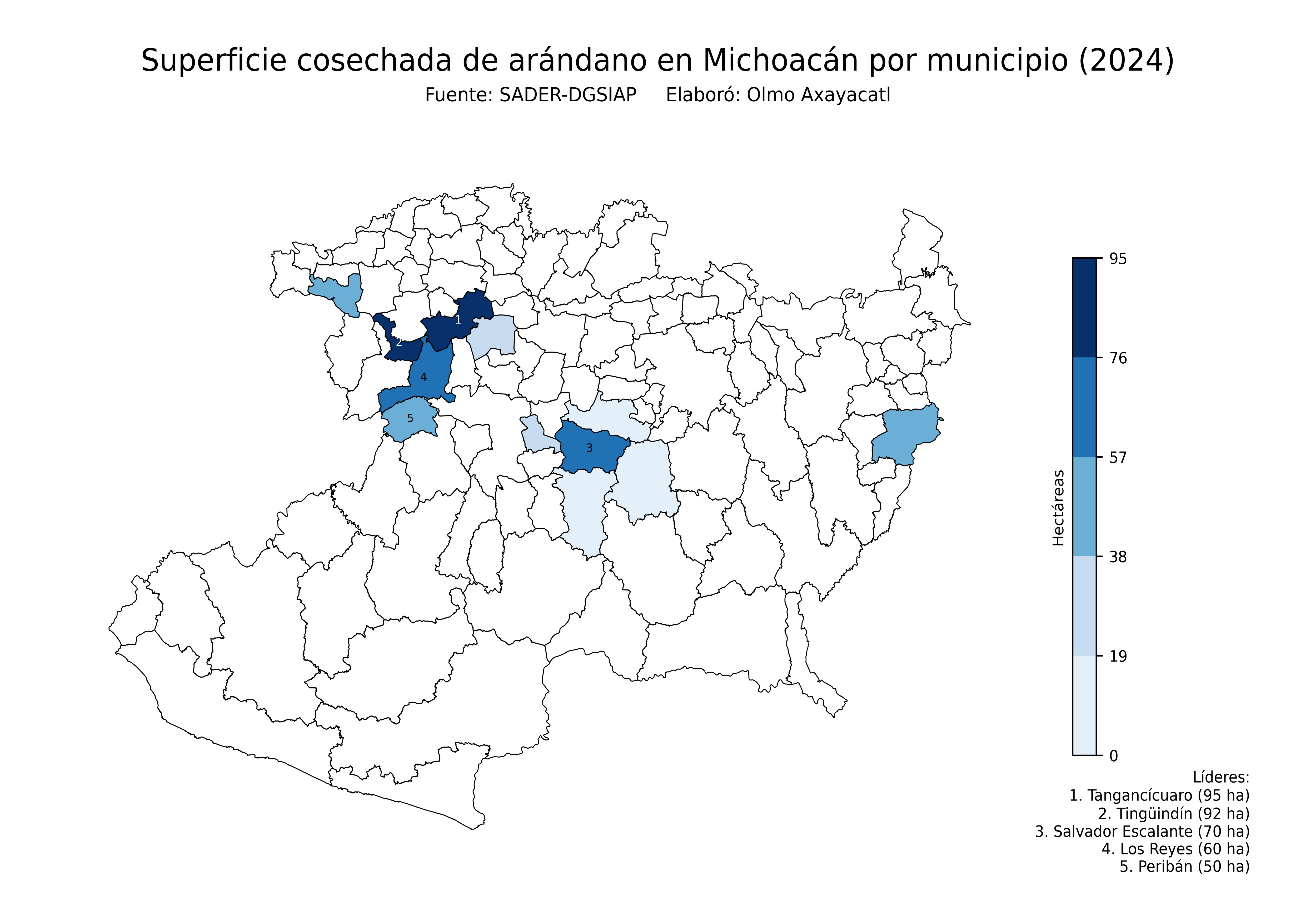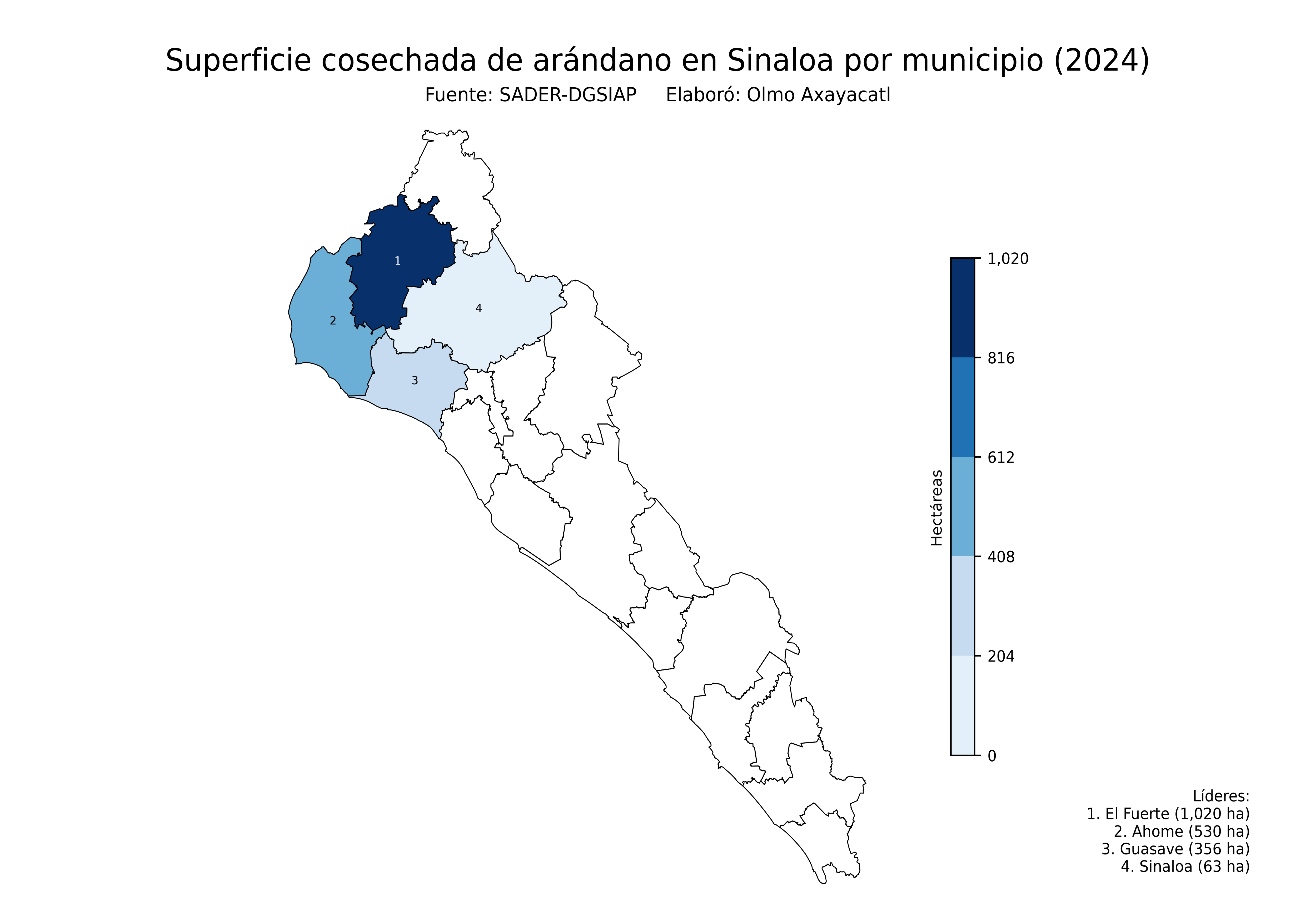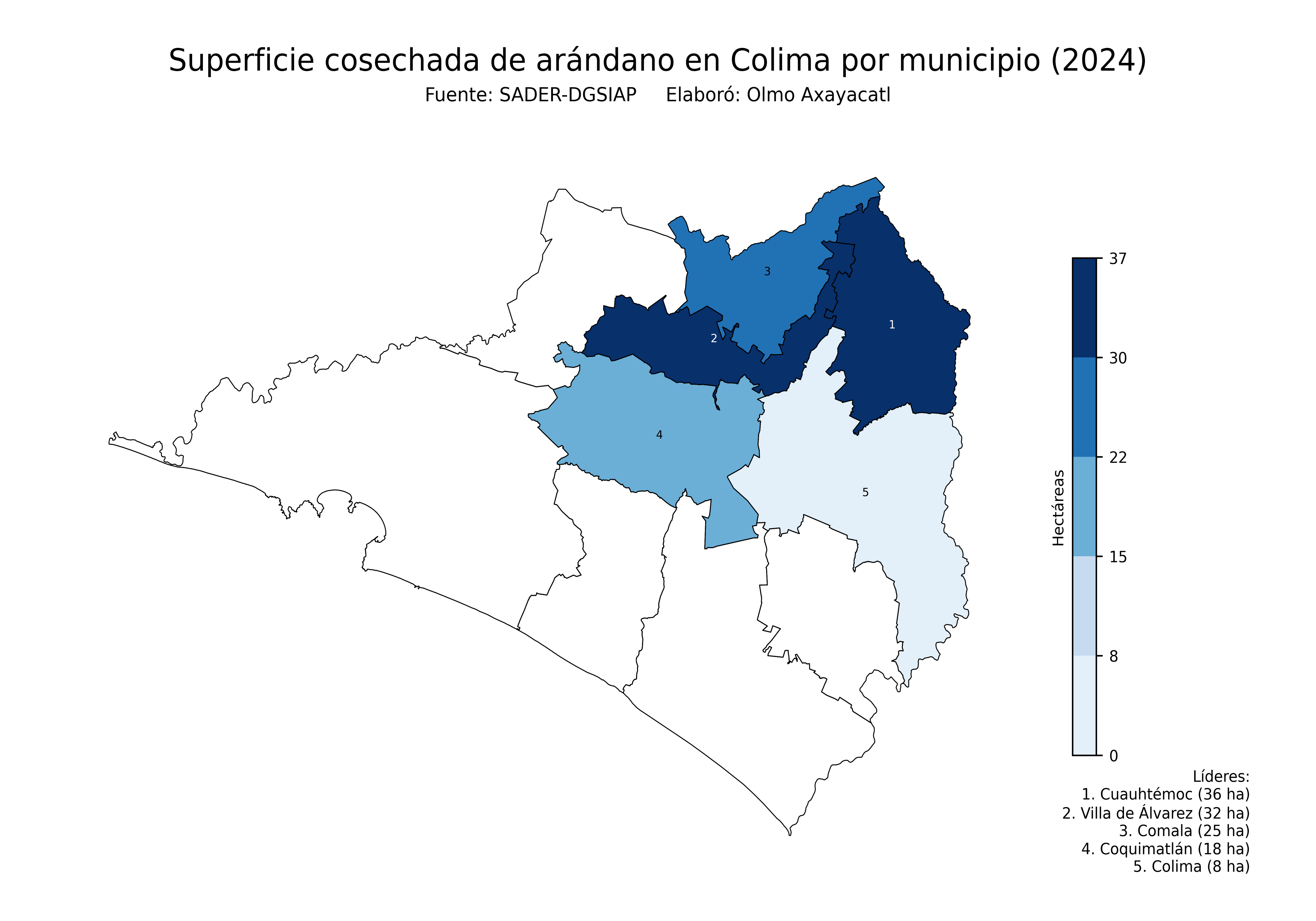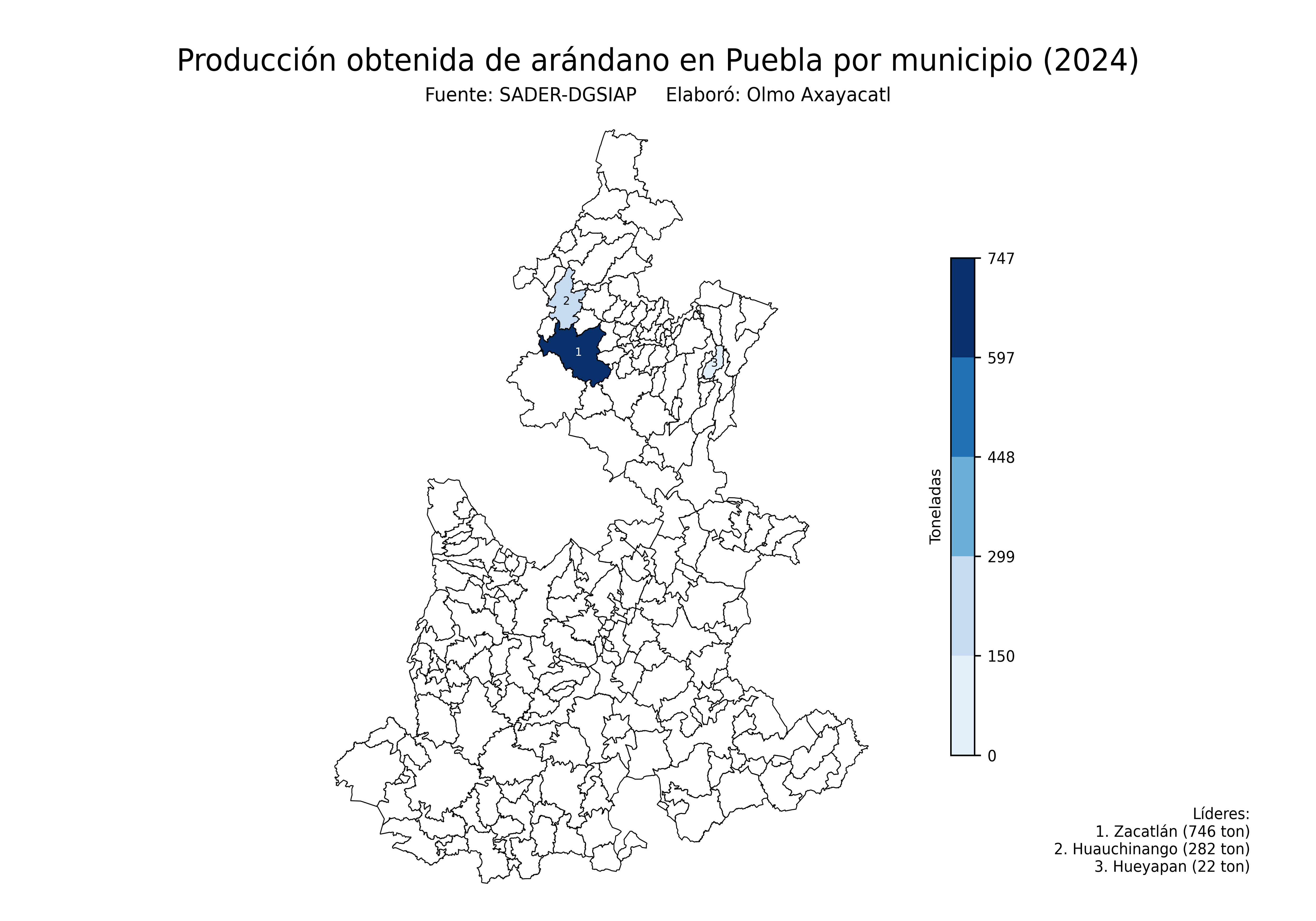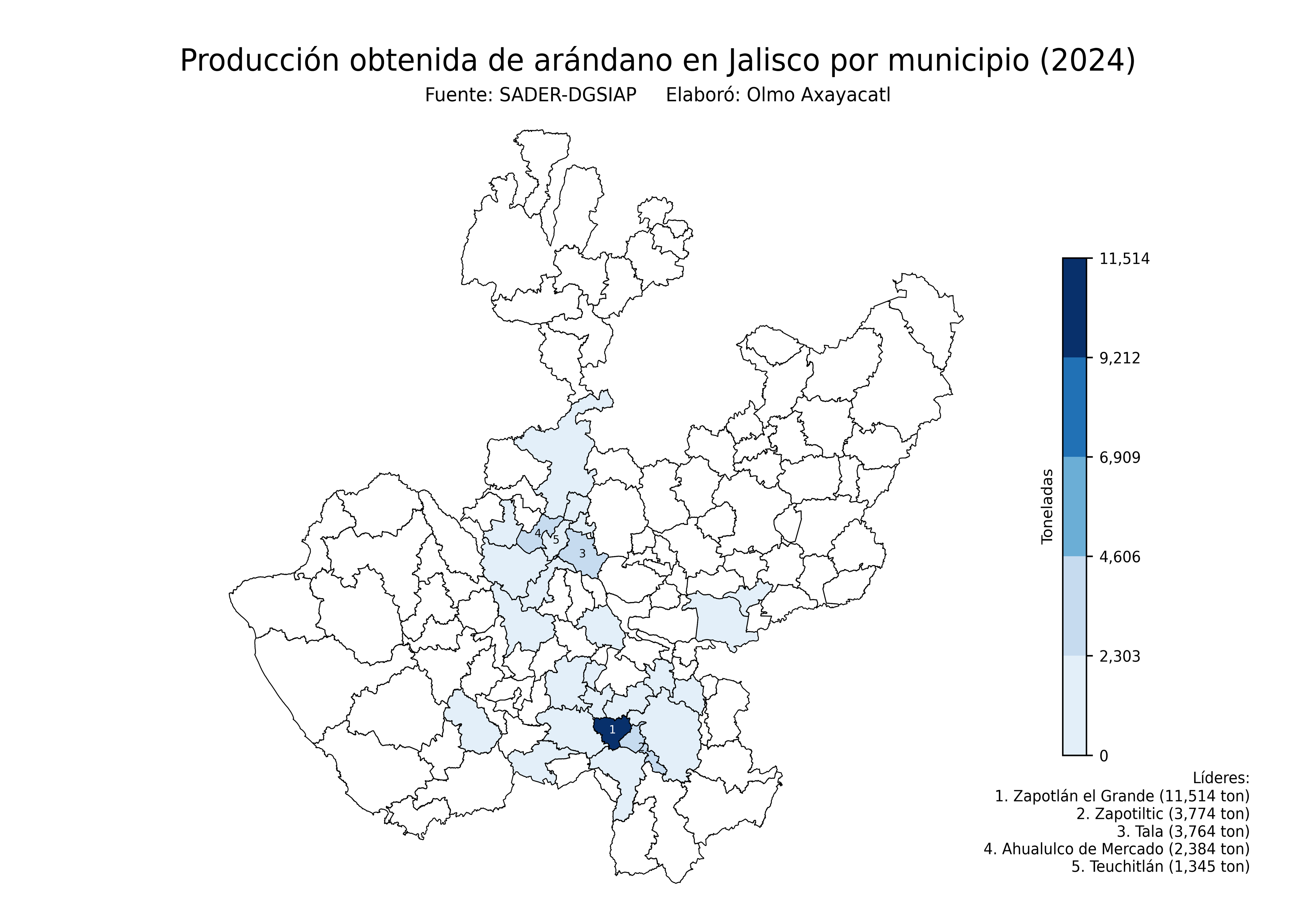 Mapas de la producción de arándano en México